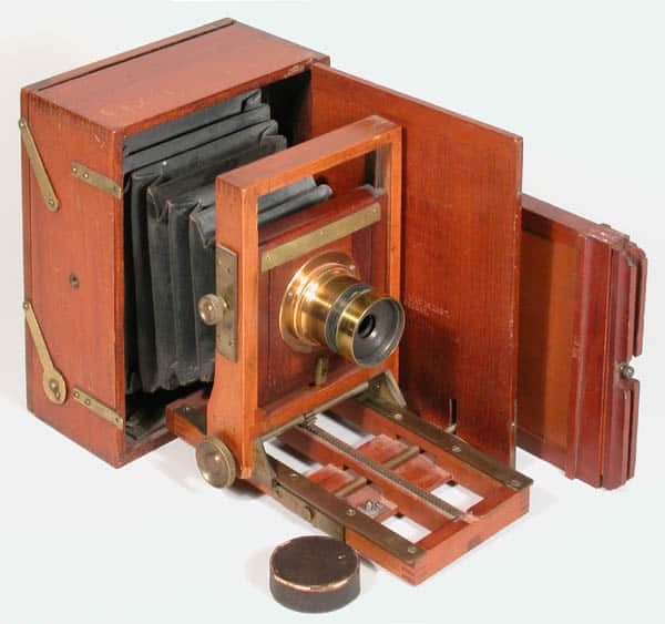 Notes: #’s1560-1563 includes camera holder, lens, canvas case, tripod; #1564 A-E=same sizes but camera only. Called The Compact Camera in the 1884 catalog.